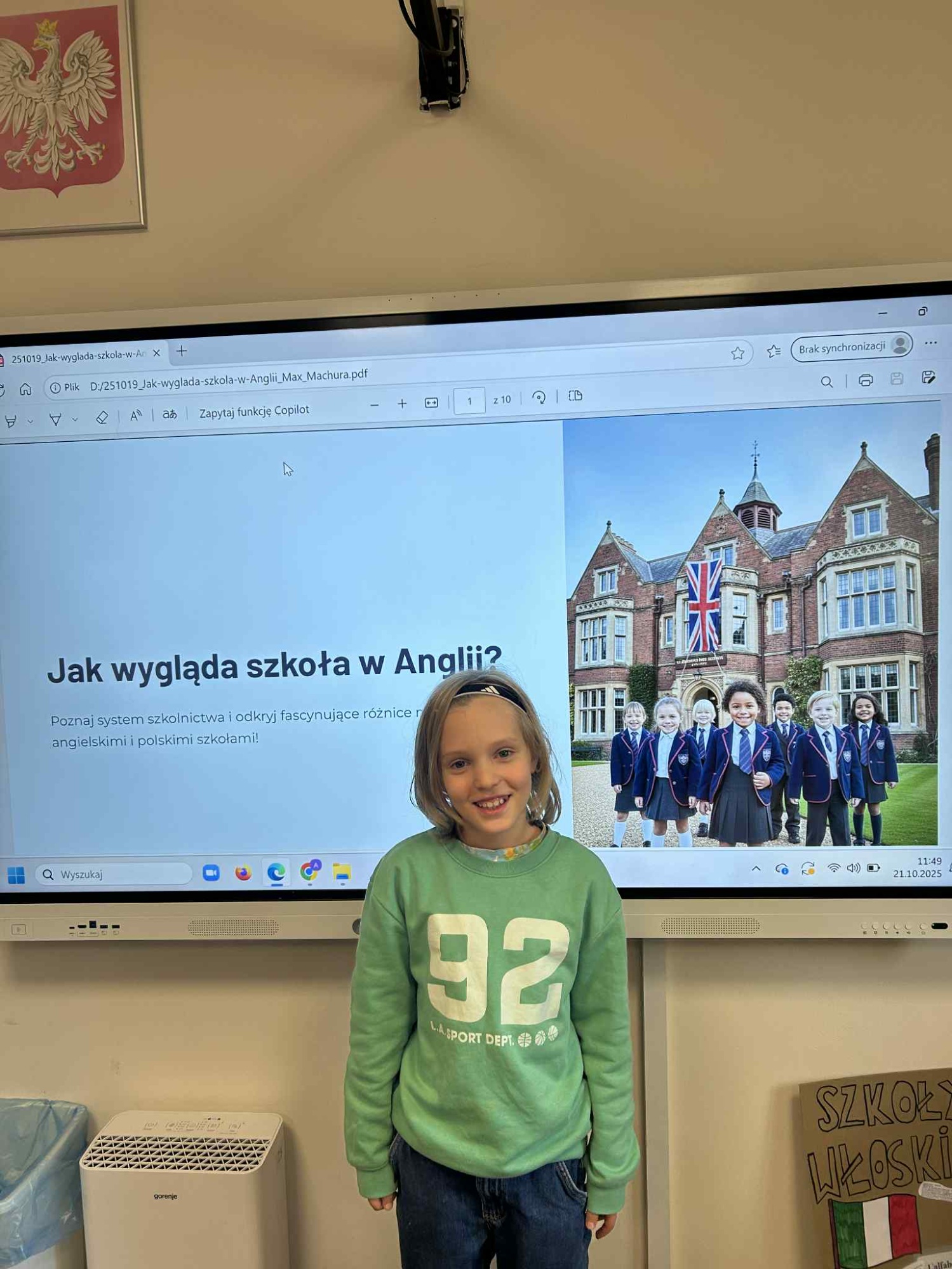 W naszej szkole zrobiło się naprawdę międzynarodowo! Uczniowie klasy 3B przygotowali wspaniałe prezentacje o szkołach z różnych zakątków świata. Była to prawdziwa podróż bez pakowania walizek – wystarczyła ciekawość, wyobraźnia i… trochę odwagi, żeby wystąpić przed publicznością!