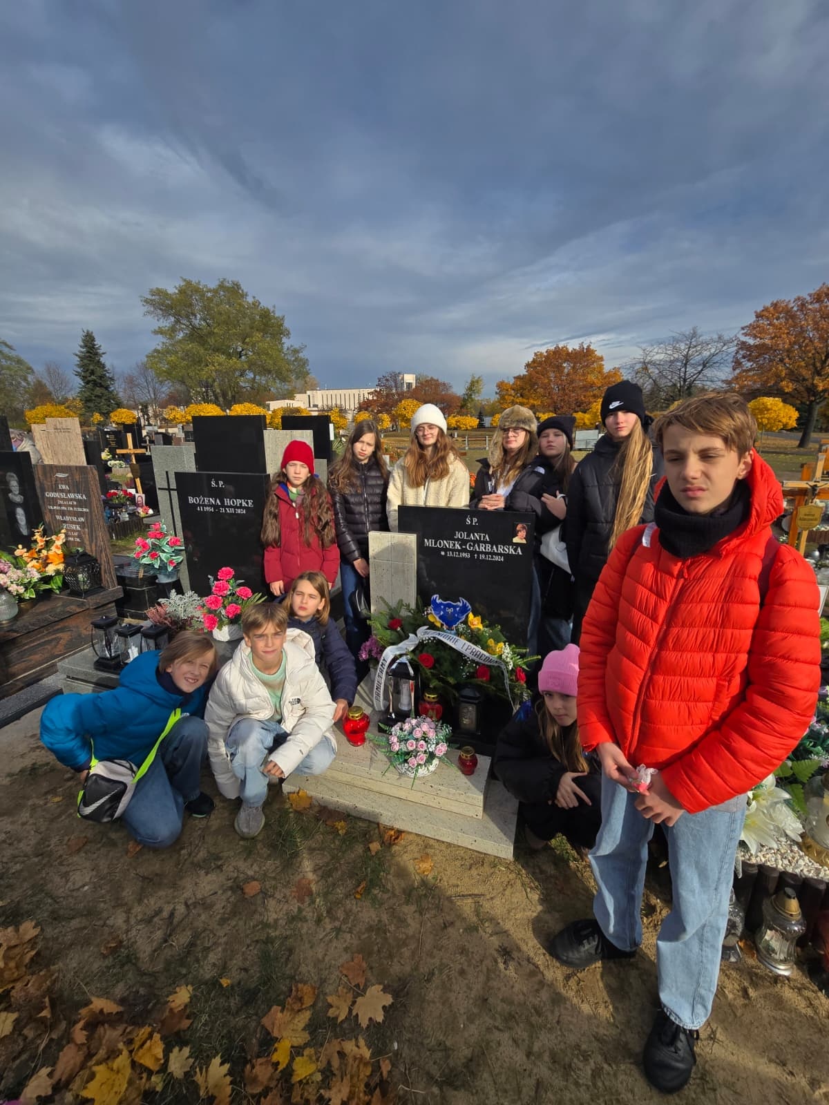 Uczniowie klasy 6B z okazji święta Wszystkich Świętych w ostatni czwartek udali się na Cmentarz Północny złożyć kwiaty oraz zapalić znicz na grobie śp. Jolanty Mlonek-Garbarskiej - wieloletniej Dyrektor naszej szkoły. Uczniowie w trakcie wycieczki odnaleźli również grób śp. Tomasza Jakubiaka - zmarłego po chorobie nowotworowej znanego kucharza. Na jego grobie również zapłonął znicz pamięci.